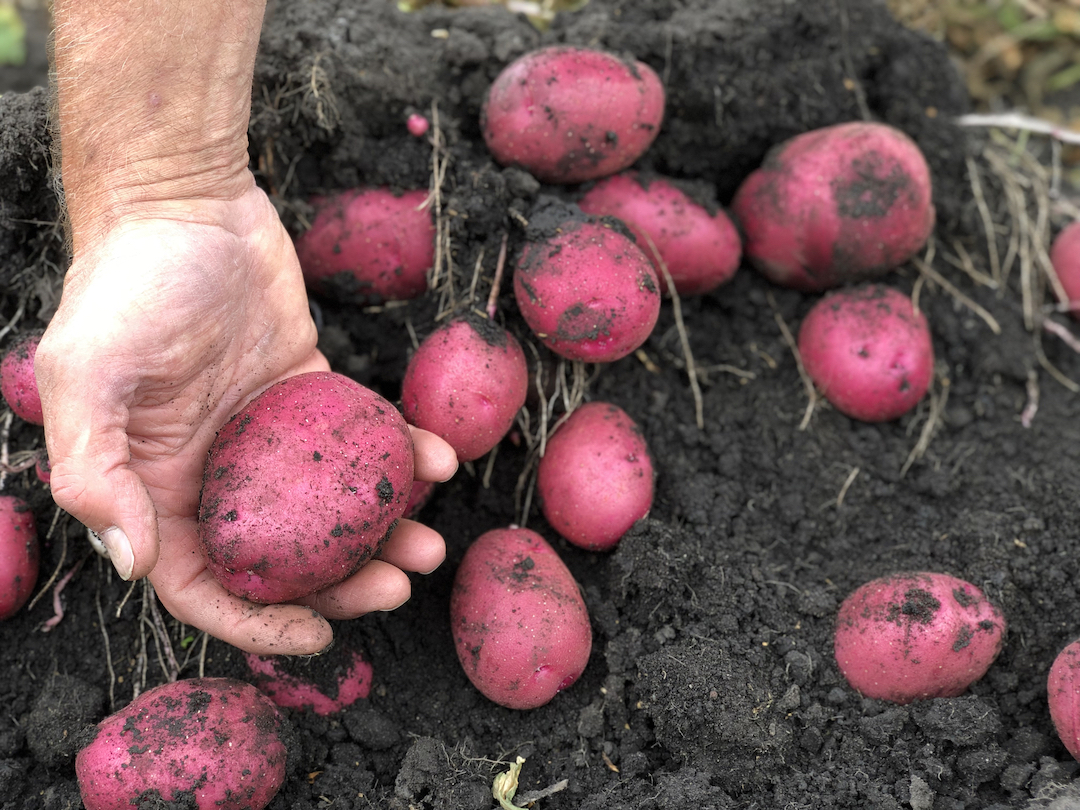 Space whole seed potatoes approximately 25-30 cm (10″-12″) apart. This variety matures relatively early and is ready in about 75-85 days. It is an excellent garden variety especially when grown in areas where scab can be a problem. Give adequate nutrients at planting time.