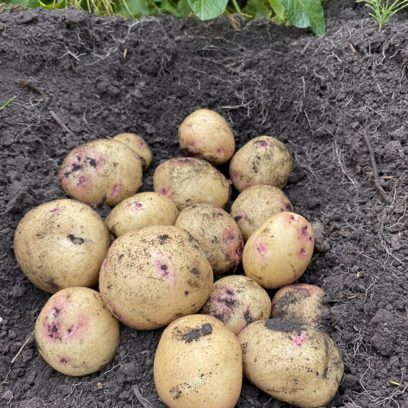 Alaska Bloom has a moist, slightly waxy texture with a subtle sweeter taste. It works well for boiling, baking, scalloped or for home-made hash browns. This variety can be picked early in the season for fresh sweet baby potatoes. It has lower starch content than most varieties.