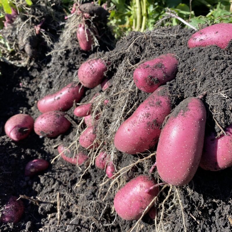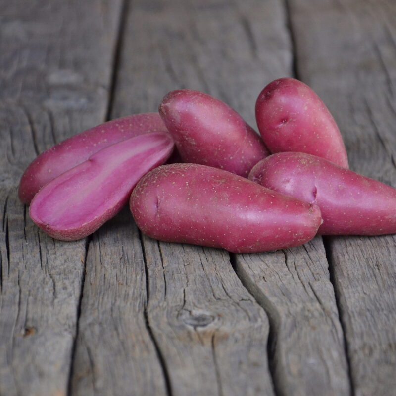 A versatile and nutritious fingerling variety with delicious pinkish red flesh. It has slightly mealy flesh texture and is suitable for oven-roasting and pan-frying. Delicious wedges or pink hashbrowns make for interesting breakfasts too!