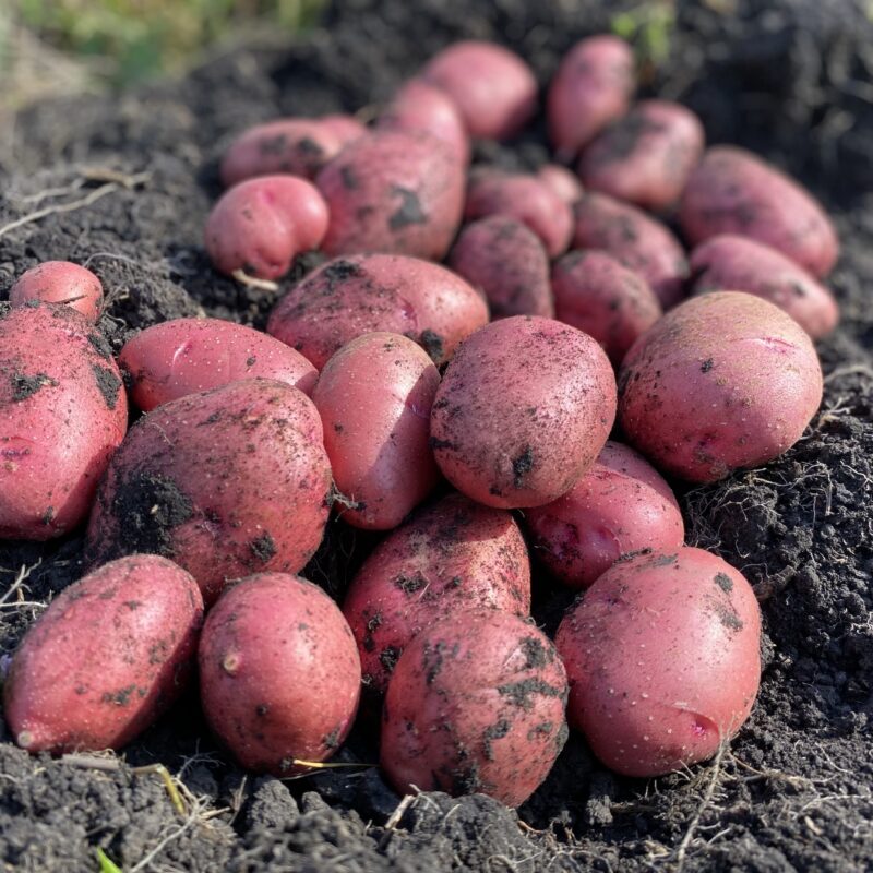 Space whole seed potatoes approximately 25-30 cm (10″-12″) apart. This early season variety is ready in about 85 days. It grows high yields in both containers and gardens and has very good resistance to common scab. Give adequate nutrients at planting time.
