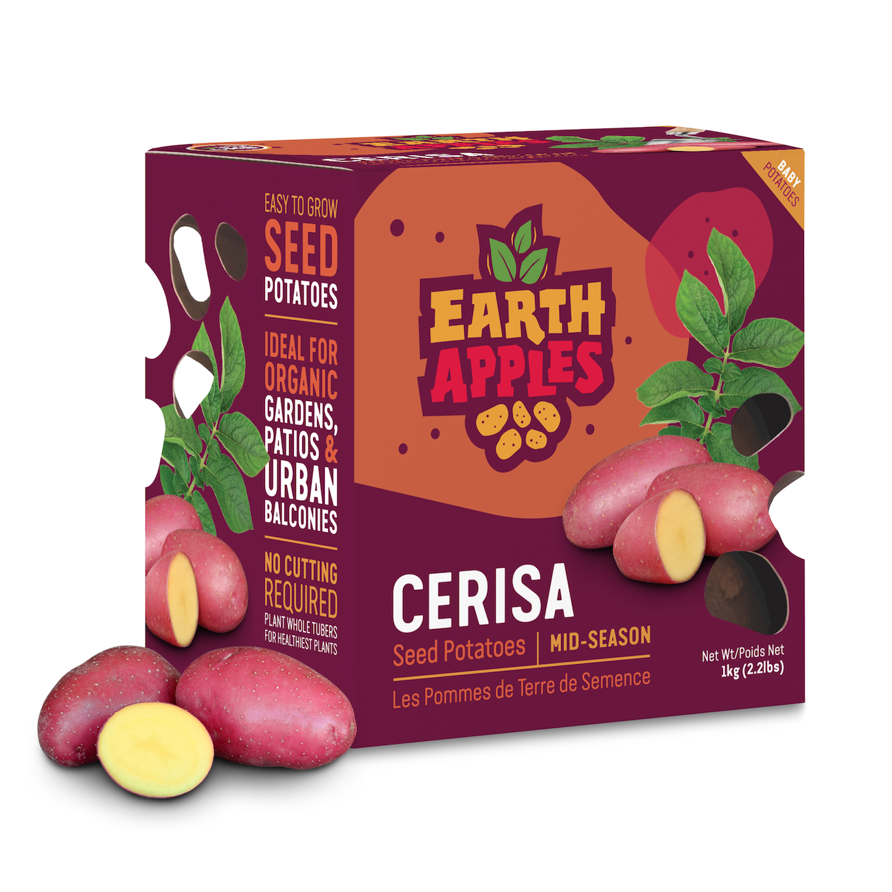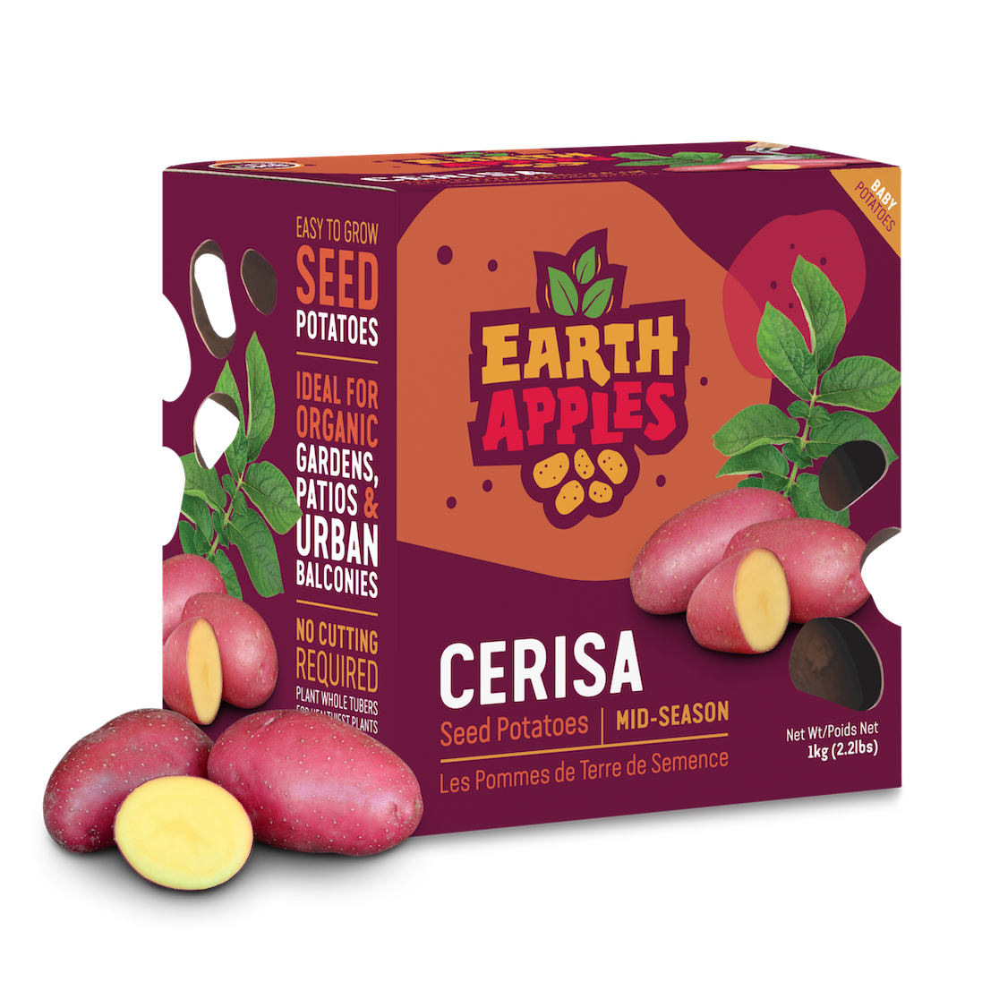 Cerisa is an elongated baby potato variety producing high numbers of smaller tubers per hill. Space whole seed potatoes approximately 25-30 cm (10″-12″) apart. Cerisa is a mid-season variety maturing in about 85-95 days. This variety is excellent for growing in containers and gardens. It will grow well even in smaller pots or grow bags.